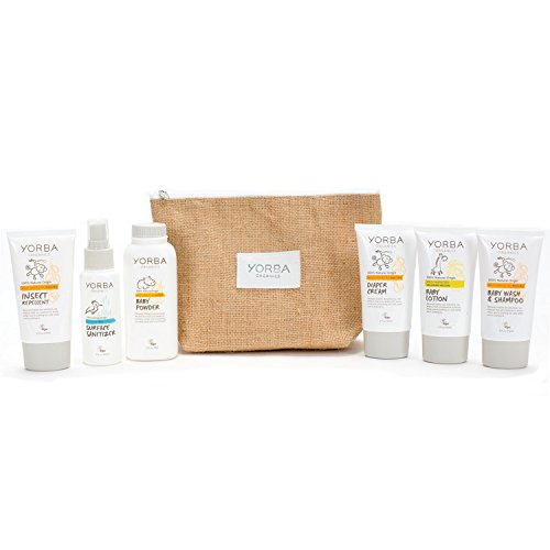 -. Feature : SIX PIECE TRIAL SIZE GIFT SET: The Baby Hassan Gift Bag is complete with Yorba's baby basics: Lotion, Baby Powder, Wash & Shampoo, Diaper Cream, Insect Repellent, and Surface Sanitizer / 100% NATURAL FORMULA: All Yorba products are infused with all natural origin ingredients that are sustainably and wild harvested / NON-TOXIC, CHEMICAL FREE & GMO-FREE: Each of these Yorba Products are free of GMOs, parabens, synthetic fragrances, petrochemicals and synthetic colors that could be harmful to your skins' health / GENTLE & EFFECTIVE: Developed by a team of natural chemists, Yorba Baby Hessian Gift Bags comes complete with products that are gentle enough for daily use and effective to where you see results / CERTIFIED ORGANIC, CRUELTY-FREE & GMO-FREE: Yorba Organics products are vegan, gluten and cruelty-free cosmetic certified by Ecocert and endorsed by PETA, The Vegan Society, and Phyto Trade Africa