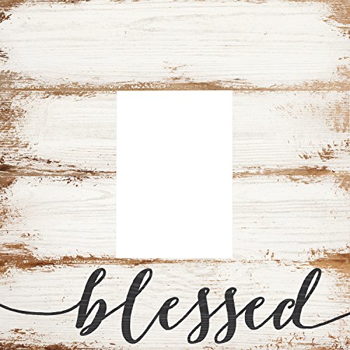 Blessed Script Design White Wash 5 x 7 Solid Pine Wood Tabletop Wall Plaque Photo Frame