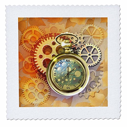 3dRose A Steampunk Theme with Metal Cogs, Gears and a Lovely Golden Pocket Watch. - Quilt Square, 14 by 14-Inch (qs_212827_5)