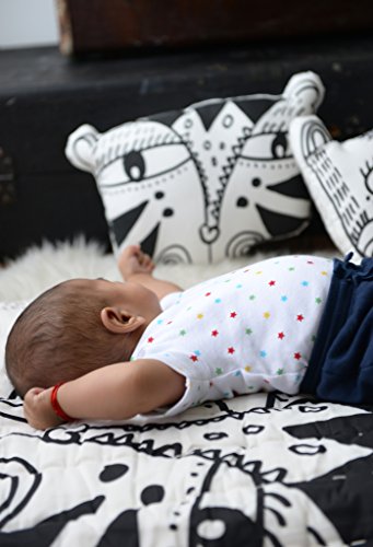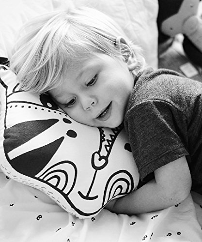 The black and white detail will help capture your kids' interest and help with their recognition skills. The pillow's black and white scheme will fit within any room's design