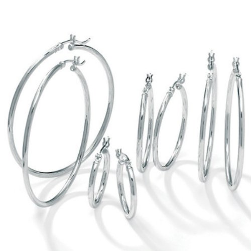 -. Title : 4 Pairs Hoop Earrings Set in 925 Sterling Silver 2mm Wide