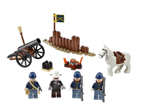 -. Feature : Includes 4 minifigures with weapons and accessories: the Lone Ranger and 3 cavalry soldiers / Features defense wall, campfire with flames, a cannon with wheels and the Lone Ranger's horse, Silver, with poseable legs and head / Defenses measure over 1" (3cm) high, 4" (12cm) wide and less than 1" (2cm) deep / Weapons include 3 revolvers and 2 r.i.f.l.es / Sneak around the defenses and defeat the cavalry