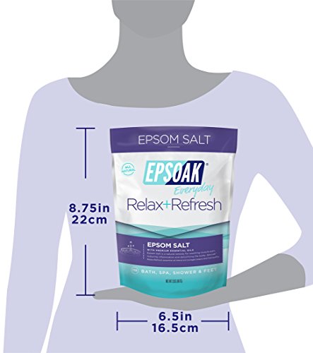 Epsoak Epsom Salt (magnesium sulfate) is the purest Epsom Salt available. Epsoak dissolves easily in warm water to help soothe muscle pain, relieve aching feet, reduce inflammation and detoxify the skin and body. Epsoak Relax+Refresh blend will encourage peace and tranquility. Relax, refresh and enjoy the benefits of Epsoak Relax+Refresh in the bath, spa, shower or as a foot soak.