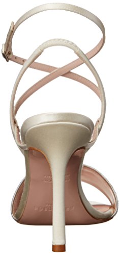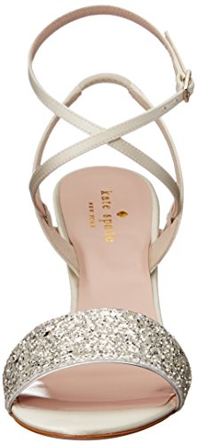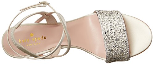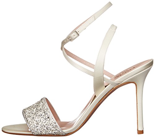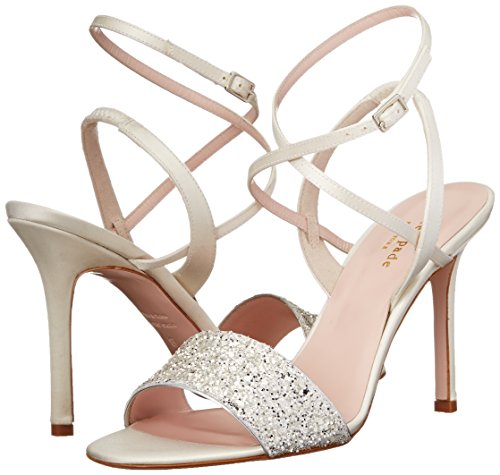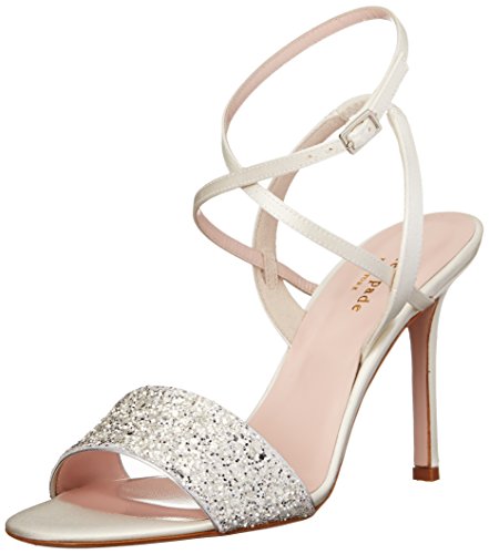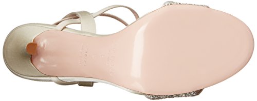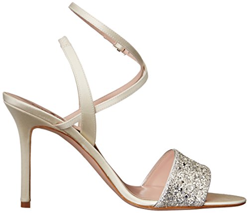 Fabric dress sandal featuring wraparound ankle straps and wide glittering toe strap