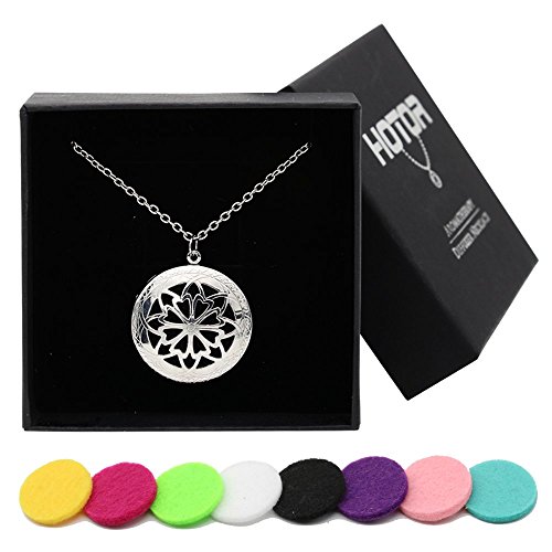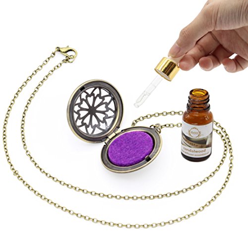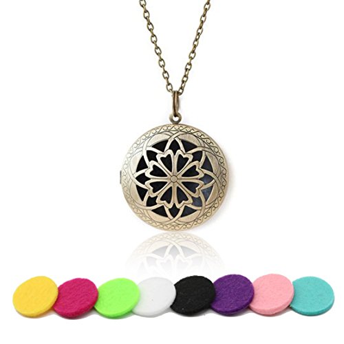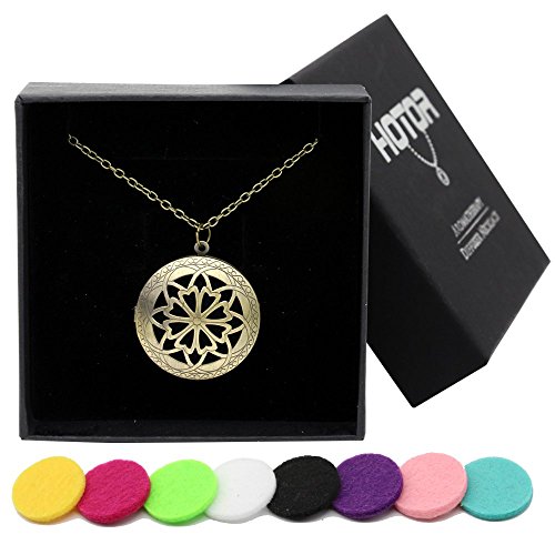 HOTOR Antique Bronze Diffuser Necklace Pendant for Essential Oils with 8 Reuseable Pads in Gift Box