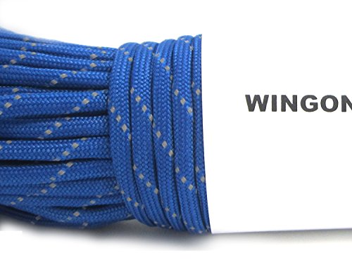 WINGONEER Blue Reflective 550 Paracord Mil Spec Type III 7 strand parachute cord 100 feet