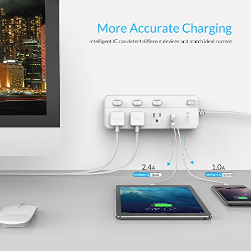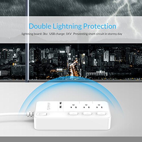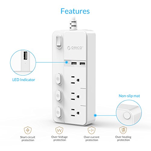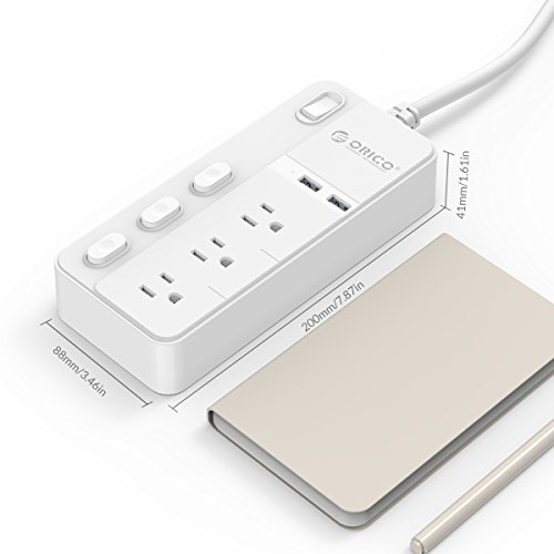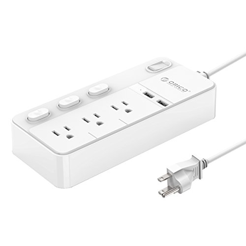 ORICO 3 Outlets Surge Protector with 2 USB Ports, 5Ft Power Cord and Individual Switch for Home, Office, Hotel, Nightstand and Dresser