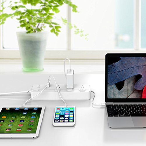 - 3 outlets with max power of 1875W, 2 USB charging ports can detect the devices and offer ideal current up to 2.4A, 4A overall.