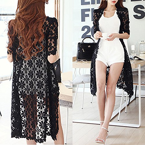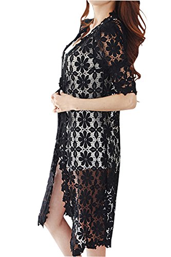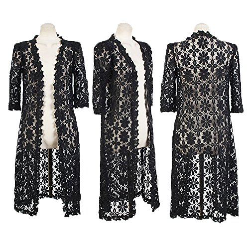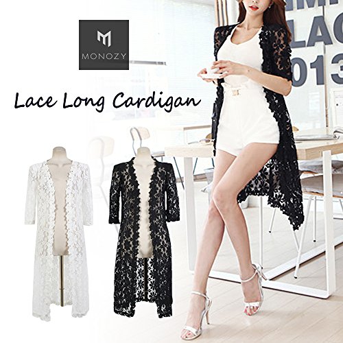 원본상품명: [モノジ?] MONOZY レディ?ス レ?ス ロング カ?ディガン レ?スガウン ノ?ボタン 花柄 刺? シ?スル? (5) ブラック : L)
