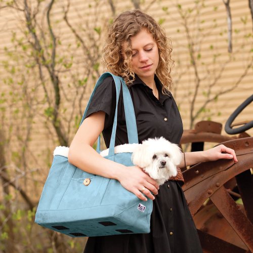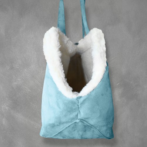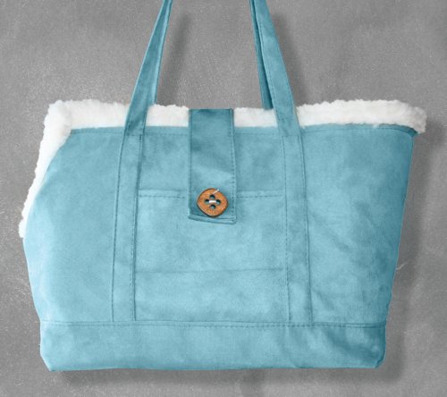-. Feature : Carry your small dog with you in style / Stylish dura-suede with cozy, luxe fauz-shearling / Interior tether for control and safety / Pockets for storage; plastic feet for secure placement / Machine washable interior pad