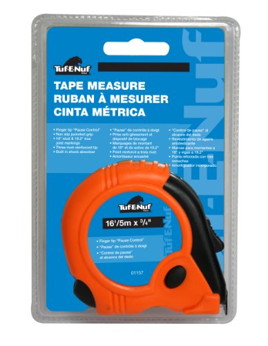 Task Tools 01157 16-Feet/5-Meter Tuf-E-Nuf Tape Measure with Rubber Jacket