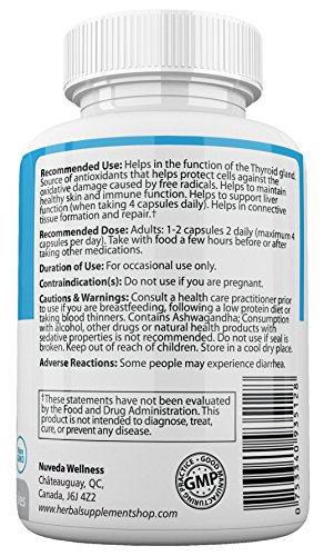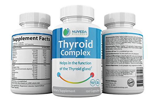 -. Title : Thyroid Support Dietary Supplement By Nuveda Wellness – Premium Quality Non GMO, Gluten Free Vitamin Complex – Glandular Function Health Formula – Support Tissue Repair & Liver Function – 120 Capsules