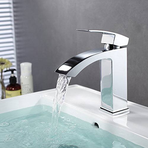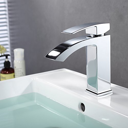 SonTiy Lead Free Bathroom Faucet Single Hole Best Modern Solid Brass Bathroom Sink Faucet Hot & Cold Single Handle Vessel Sink Faucet Chrome