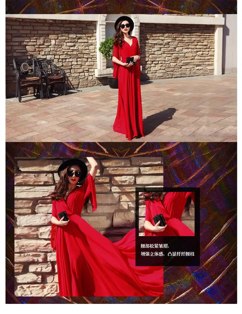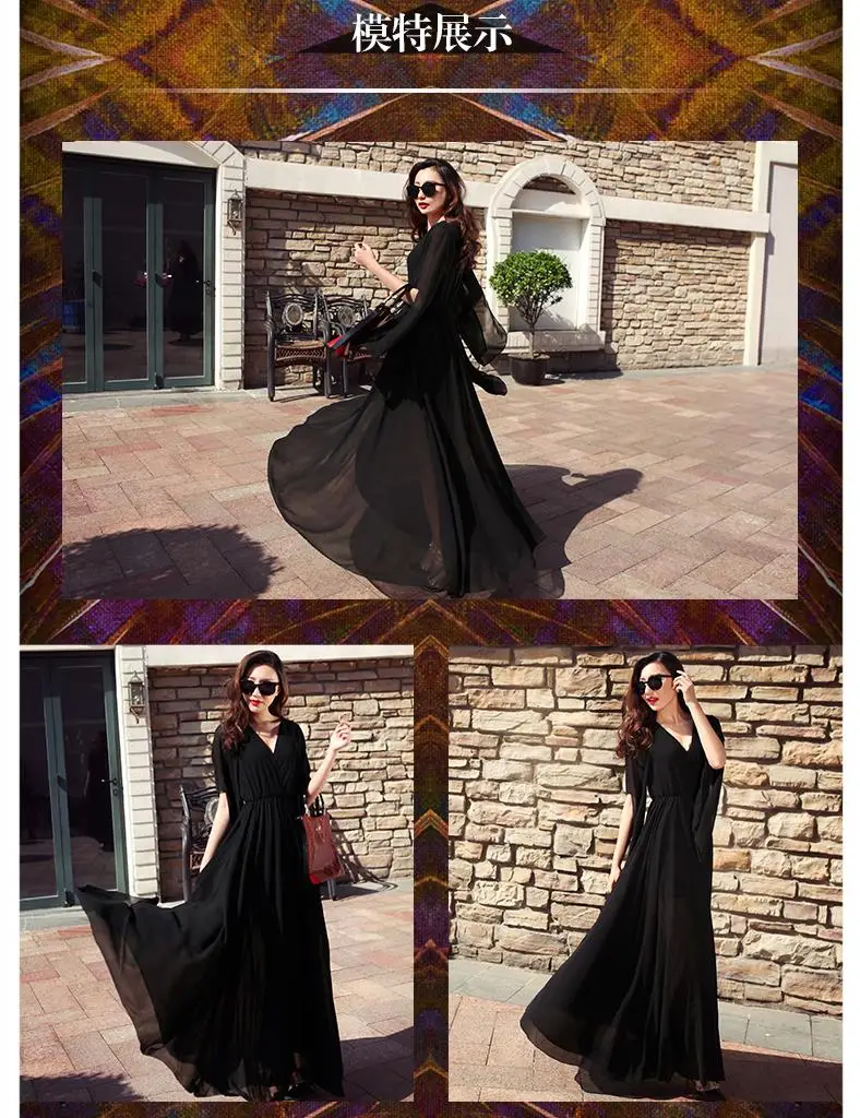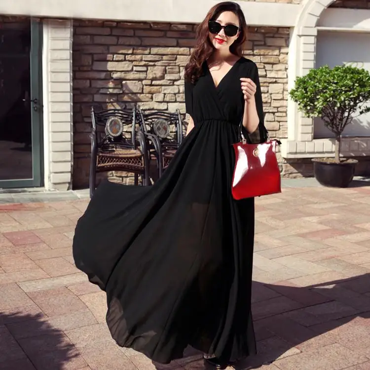 新しい夏のスタイルの女性シフォンドレスピュアカラーvネックロングマキシドレスプラスサイズの女性服セクシーなクラブローブvestidos wd352