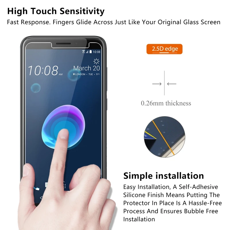 2 Pcs/Lot 2.5D 0.26mm 9H Premium Tempered Glass For HTC Desire 12 5.5 inchu0026nbsp;Screen ProtectorToughened protective film