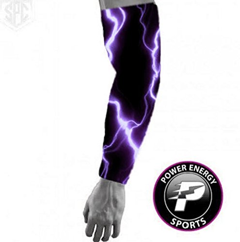 -. Binding : Misc. -. Brand : Power Energy Sports -. Feature : Compression fit and stretch fabric for muscle support and freedom of movement. / Moisture wicking performance fabric keeps you dry and comfortable. / 83% sublimated Polyester/17% Spandex. / Provides protection from UV rays. / Click thumbnail image for sizing information -. Label : Power Energy Sports -. Manufacturer : Power Energy Sports -. ProductGroup : Sports -. ProductTypeName : SPORTING_GOODS -. Publisher : Power Energy Sports -. Studio : Power Energy Sports -. Title : Baseball Sports Compression Arm Sleeve - Purple Lightning