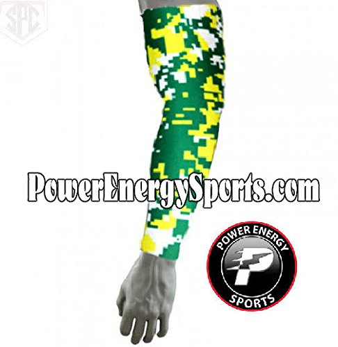 -. Binding : Misc. -. Brand : Power Energy Sports -. Feature : Compression fit and stretch fabric for muscle support and freedom of movement. / Moisture wicking performance fabric keeps you dry and comfortable. / 83% sublimated Polyester/17% Spandex. / Provides protection from UV rays. / Click thumbnail image for sizing information -. Label : Power Energy Sports -. Manufacturer : Power Energy Sports -. ProductGroup : Sports -. ProductTypeName : SPORTING_GOODS -. Publisher : Power Energy Sports -. Studio : Power Energy Sports -. Title : Baseball Sports Compression Arm Sleeve - Digital Camo Green Yellow White