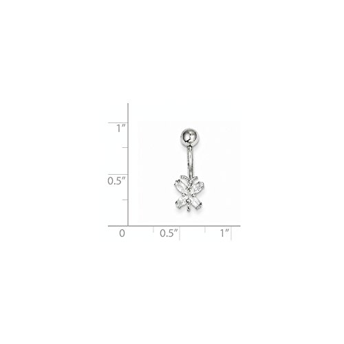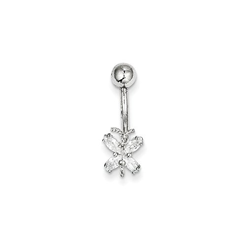 Product DescriptionSolid 10k White Gold with CZ Cubic Zirconia Butterfly Belly Dangle (7mm x 21mm)0