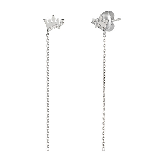 ティアラのエッジ部分から落ちる長いチェーンがシックな魅力をさらに生かしてくれるピアスデザインです。