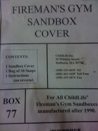 Studio : Childlife Publisher : Childlife Binding : Toy Product Description BOX 77 This unique cover will help prevent mildew because it allows the sand to breathe. Keeps debris and pets out of the sandbox. Use the cover as a sieve to clean your sand quickly and easily.Snaps along edges, Snaphead screws are provided, Use with many sand boxes. Photos are generic and do not represent actual coverage or size, toys,wood, children and sand are NOT included.Hunter Green BOX 77 Appx size is 62 inches by 40 inches edge to edge, 0