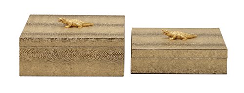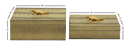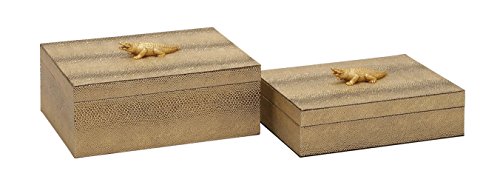 Deco 79 70684 Wood PVC Leather Box, Set of 2
