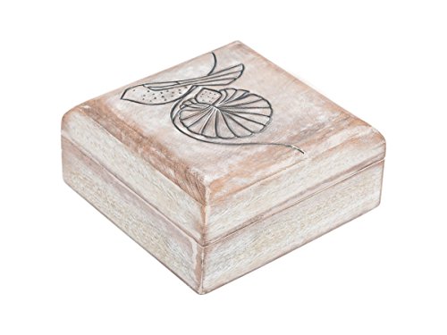White Distressed Finish Jewelry Trinket Box Organizer Storage Box Multipurpose Storage Hand Carved