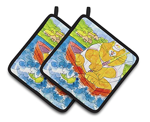 Caroline's Treasures Big Orange Cat Fishing Pair of Pot Holders 6107PTHD, 7.5HX7.5W, Multicolor