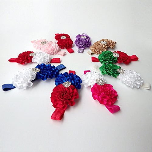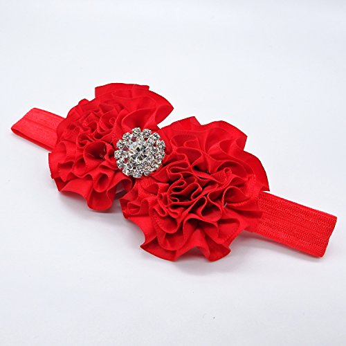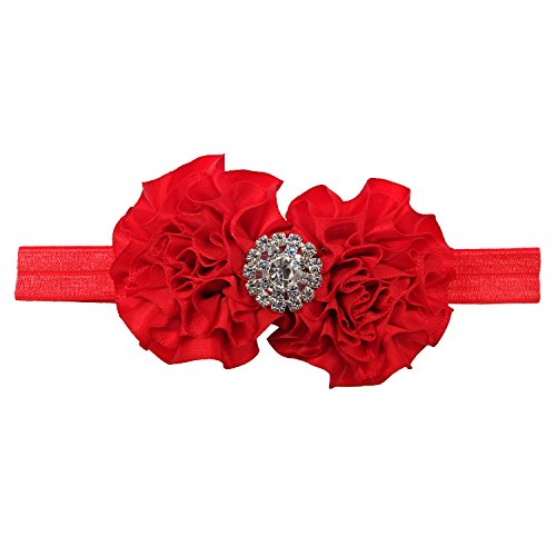 Rarelove Baby Girls Headband Flower Bow Rhinestone Hair Bands Accessories (Red)