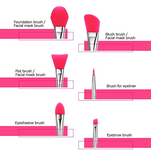 Anself 6pcs Silicone Makeup Brush Set Facial Mask Foundation Brushes Eyeshadow Eyebrow Brush Kit
