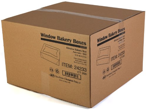 Southern Champion Tray 24233 Paperboard White Window Bakery Box, 10" Length x 10" Width x 2-1/2" Height (Case of 200)