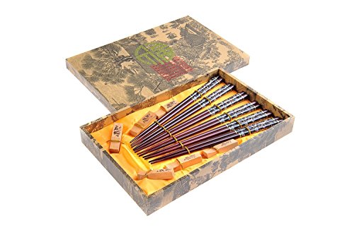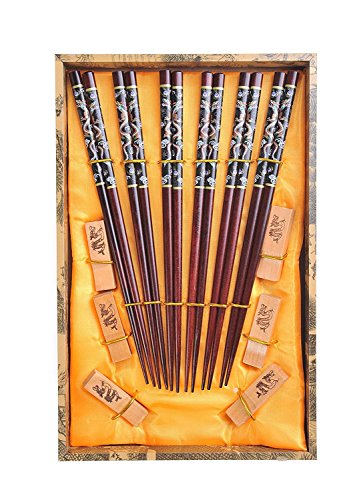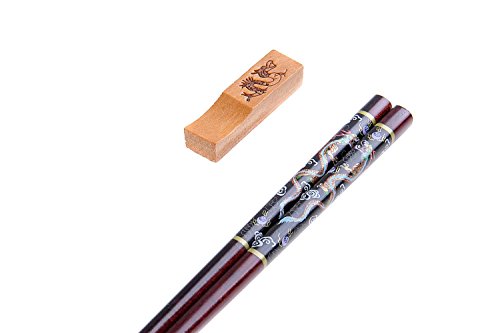 Abacus Asiatica: "Black Dragon" elegant chopstick set, carved-wood chopsticks in decorative box (6 pairs of chopsticks with rests), Mod. CB-S6-G-H04 (US)