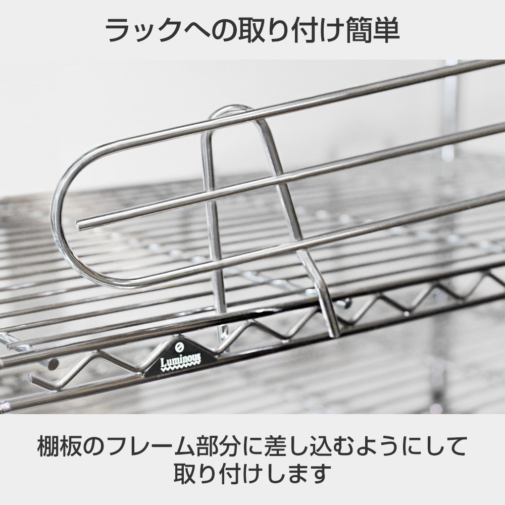 ◆ Insert it on the side of the steel shelf (shelf) and install it, the shelf to prevent the spillage of the stored items is the depth 29.5 cm dedicated parts.