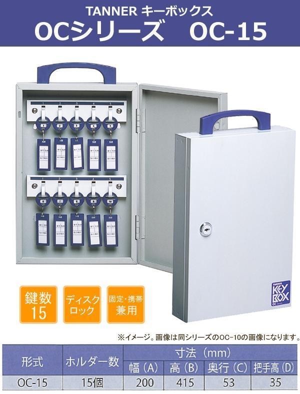ディスクシリンダ錠式のローコストタイプのキーボックです。中規模~一般家庭用に。 製造国:中国 素材・材質:鉄 商品サイズ:幅200×高さ415×奥行53×把手高35mm 仕様:ホルダー数:15ボックスカラー:アイボリー 付属品:ディスクシリンダーキー2本 ※サプライヤー直送品 ご注文後2~3営業日後の出荷となります【商品名】TANNER キーボックス OCシリーズ OC-15