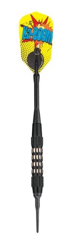 The Viper Comix Soft Tip Darts weigh 18 grams and are designed with pineapple cut grooves situated along the vibrantly colored alloy barrels. This super hero themed dart set includes 6 convex nylon shafts, 6 poly pro flights, a dart mechanic wrench, and 23 2BA Tufflex tips. Keep everything in this set tidy and in one place with the slim dart case. Choose your super power with the BAM, POW or Ka-BOOM series darts.