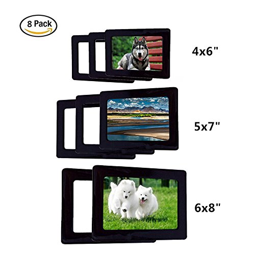 - EASY TO USE - This set includes black 8 Pack magnetic frames that hold photo sizes 4x6",5X7",6x8".Made of high quality durable soft pvc .