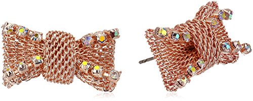 Tie up your ideal look with the Betsey Johnson® Bow Stud Earrings. Bow shaped earrings are covered in chain and feature shimmering rhinestone accents. Rose gold-tone finish. Post back closure. Imported. Measurements: Width: 9⁄10 in Height: 1⁄2 in Weight: 0.1 oz