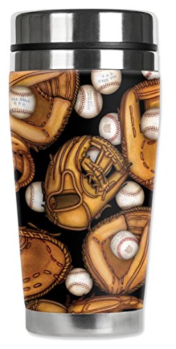 Mugzie 6504-MAX "Baseball Gloves" Stainless Steel Travel Mug with Insulated Wetsuit Cover, 20 oz, Black