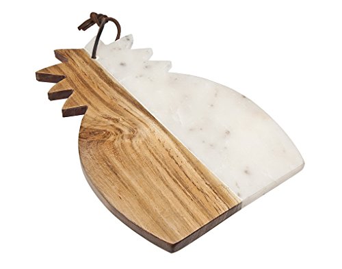 Web exclusive! This delightful serving board from Godinger is as functional as it is attractive. The stunning acacia wood design on one side is perfect for slicing veggies and cheese while the equally-gorgeous marble side will ensure your freshly-cut food stays cool for hours. A hanging hook is also attached, so you can display this serving board on your kitchen wall for easy access.Feature
