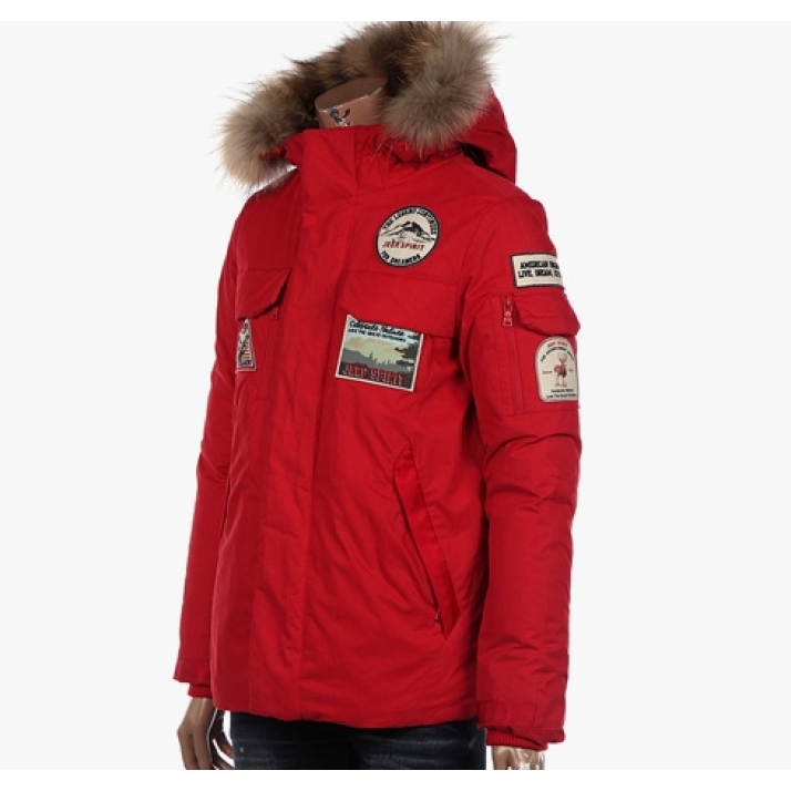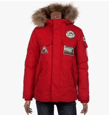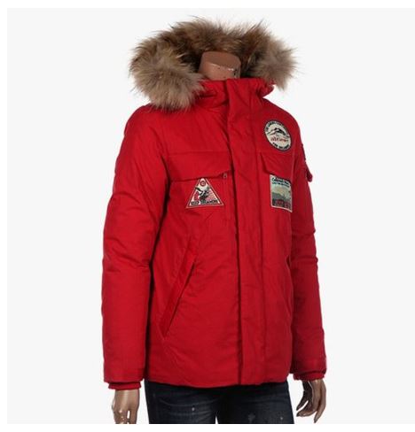 | 소재 | 겉감 - 면60%, 나일론40, 안감 - 폴리에스터100%, 충전재1 - 오리솜털70%, 오리깃털30%, 충전재2 - 폴리에스터100%, 배색1 - 폴리에스터100%, 배색2 - 너구리털100% |