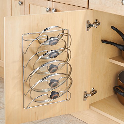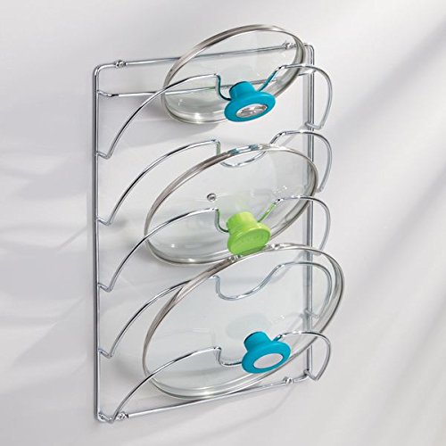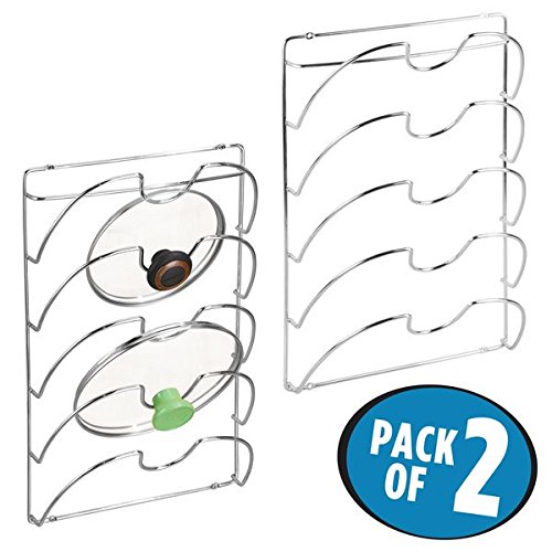 mDesign Kitchen Cabinet Mounted Storage Rack for Pot Lids, Pan Lids - Pack of 2, Chrome