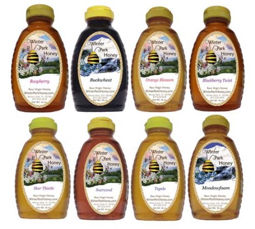 -. Binding : Misc. -. Brand : Winter Park Honey -. Feature : Sample several gourmet honeys for one low P.R.Ice. / Honey by the beekeeper. / All of our honey is raw, unheated and unfiltered. / Honey straight from the comb to the bottle. / We consisitently win first place in honey taste contests. -. Label : Winter Park Honey -. Manufacturer : Winter Park Honey -. NumberOfItems : 8 -. PackageQuantity : 1 -. ProductGroup : Grocery -. ProductTypeName : GROCERY -. Publisher : Winter Park Honey -. Studio : Winter Park Honey -. Title : Winter Park Honey Sampler - 128oz (Pure Natural Honey)