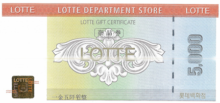 롯데백화점 상품권 5000원권이 증정됩니다.