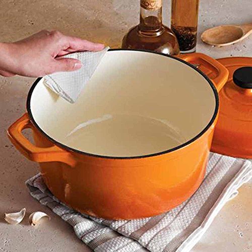 -. Feature : Cast iron cookware guarantees notwithstanding warming and astounding warmth maintenance / Awesome for making soups, stews, braising meats, preparing, searing and the sky is the limit from there / Perfect with gas, electric, open fire, and induction cooktops / Broiler safe up to 400 degrees Fahrenheit or 204 degrees Celsius / Outside porcelain veneer completion is sturdy and scratch-safe