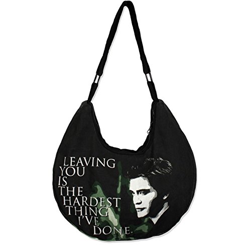 -. Binding : Toy -. Brand : NECA -. Color : Black -. EAN : 0634482213117 -. Feature : Inspired by New Moon the movie / Features characters from the Twilight Saga / Great gift / Highly collectible / Great quality by NECA -. IsAdultProduct : 0 -. Label : NECA -. Manufacturer : NECA -. Model : 21311 -. MPN : PE21311ACCPOS -. NumberOfItems : 1 -. PackageQuantity : 1 -. PartNumber : PE21311ACCPOS -. ProductGroup : Toy -. ProductTypeName : TOYS_AND_GAMES -. Publisher : NECA -. Studio : NECA -. Title : Twilight New Moon "Leaving You" Hobo Bag -. UPC : 400099514875