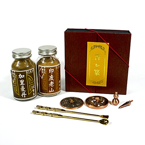 Set of Incense Tool with Agarwood + Sandalwood Powder - RED Bronze-Electroplated