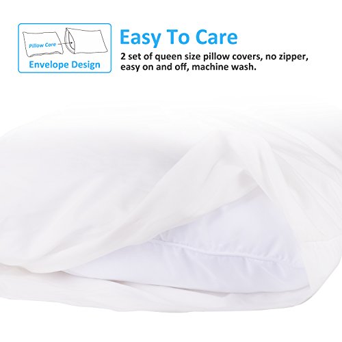 Set of 2 Pillow Cases Queen Size, 100% Brushed Microfiber Lighting Mall Pillow Covers, Ultra Soft, Envelope Closure End, Wrinkle Free, Stain Resistant (White)