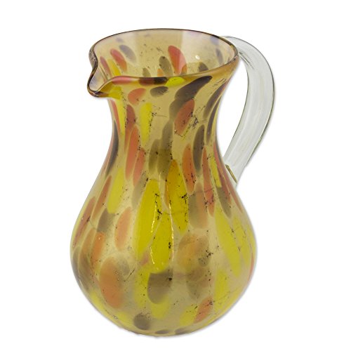 NOVICA Hand Blown Yellow Eco-Friendly Glass Pitcher, 77 oz. 'Amber Fantasy'