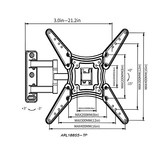 Studio : topstone Publisher : topstone Binding : Electronics Product Description The Everstone articulating mount is a mounting solution for 23"- 55". The TV mount fit VESA up to400x400mm (16"x16").High-grade cold-rolled steel construction provide safety loading.It meets most of wall mounting needs in a simple and affordable design. The arm can easily be adjusted, allowing you to watch your shows in a more comfortable, ergonomically correct position. Continuous motion is possible without the use of tools. This Single Stud Design is the best option for corner, and it comes with 4 removable mount adapters to extend the VESA range for those larger TV. Besides, we work directly with the manufacturing process ensuring our brand has top quality steel. Enjoy your shows with us from now!