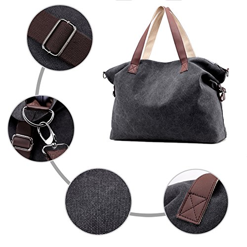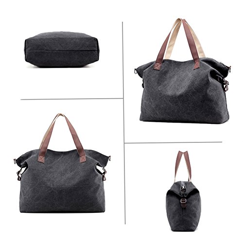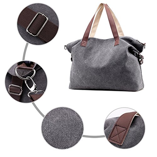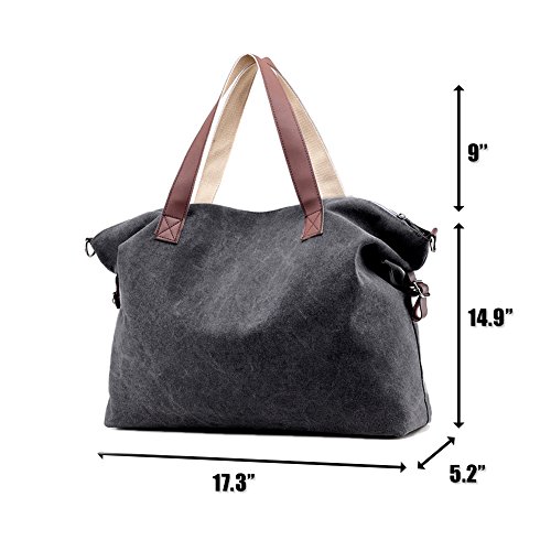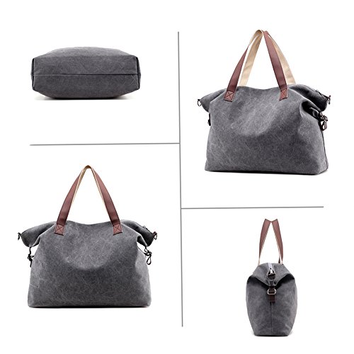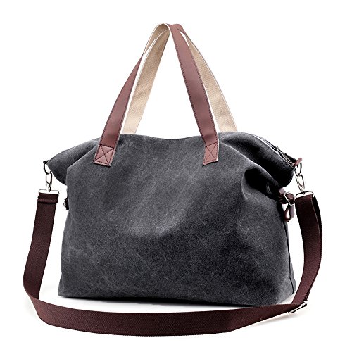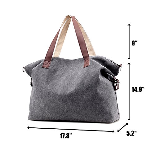 Product Description LOSMILE Weekend Bag: LOSMILE aims to make comfortable and functional bags. In order to give our customer a perfect shopping experience, LOSMILE chooses high quality thick canvas fabric, soft polyester lining and exquisite accessories to make bags. The Weekend Bag will be your best friend while you have a weekend getaways, a business trip or a vacation to the beach. Its great storage capacities and convenient size allows you to store all your essentials in one spacious and stylish duffle bag that you will definitely love! Features: Color: Black, Brown, Grey, White, Blue. Material: Durable, light and soft canvas Soft polyester lining Top zipper closure. Size: 17.32" (When it is Full ) / 21.3" (When it is Empty). Height:14.9". Width:5.2" Shoulder Strap adjusts: 47inch - 25inch Weight: 0.58kg