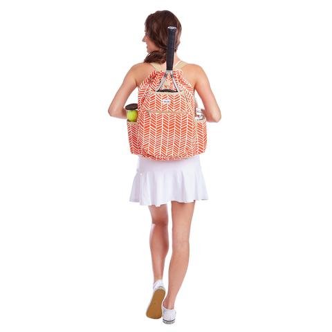 Studio : Ame and Lulu Publisher : Ame and Lulu Binding : Misc. Product Description Get noticed on the court with this fashion ladies tennis backpack. Our best selling tennis bag now has a snap closure to help secure your possessions and padded adjustable straps for extra comfort. The exterior racquet pocket fits two oversized racquets.?Protective metal feet on base. Measures 11.5"L x 6.5"W x 20"H. Color: Orange Khaki. 0